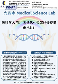 生体情報研究センターでは、高度医療人材の育成の一環として、「医科学入門:次世代への架け橋授業」を実施しております。生体情報研究センターの教員が高校に出向き、授業を担当します。高校の行事や授業の一環としてもご利用いただけます。